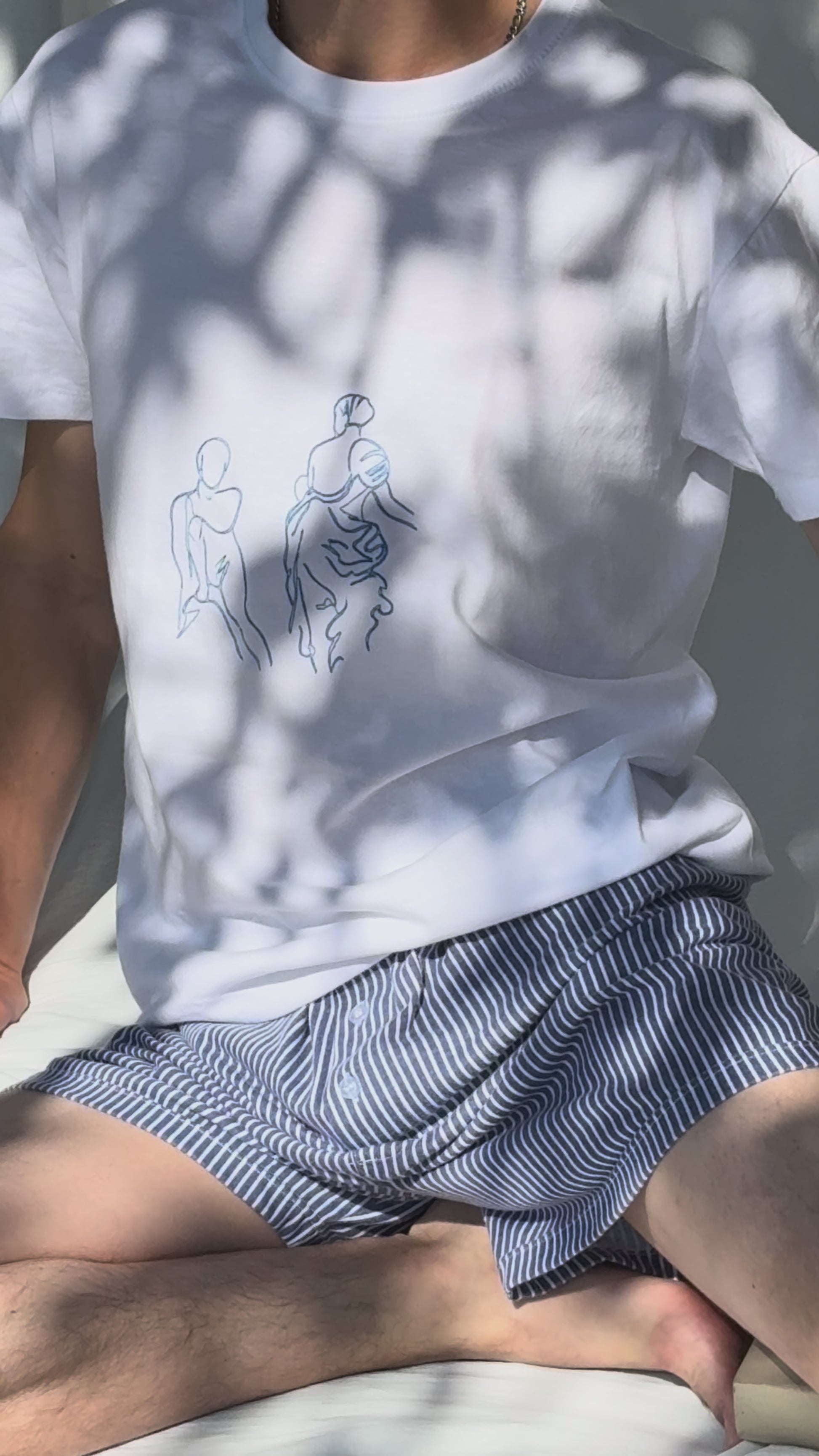 “This drawing was born in a notebook several years ago. Inspired by Carracci's painting "The Choice of Hercules," it tells the story of an ancient episode. Today, it is embroidered on a t-shirt, like a fragment of history to wear.”